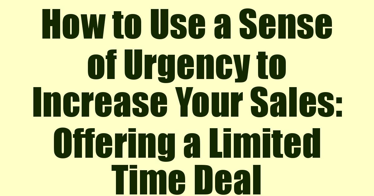 Think about how you can create a time sensitive deal where people only have a limited time to take you up on it. The sense of urgency encourages people to buy. If you have an email list, constantly remind people of the deadline, as often the most sales will happen in the last day near the end.